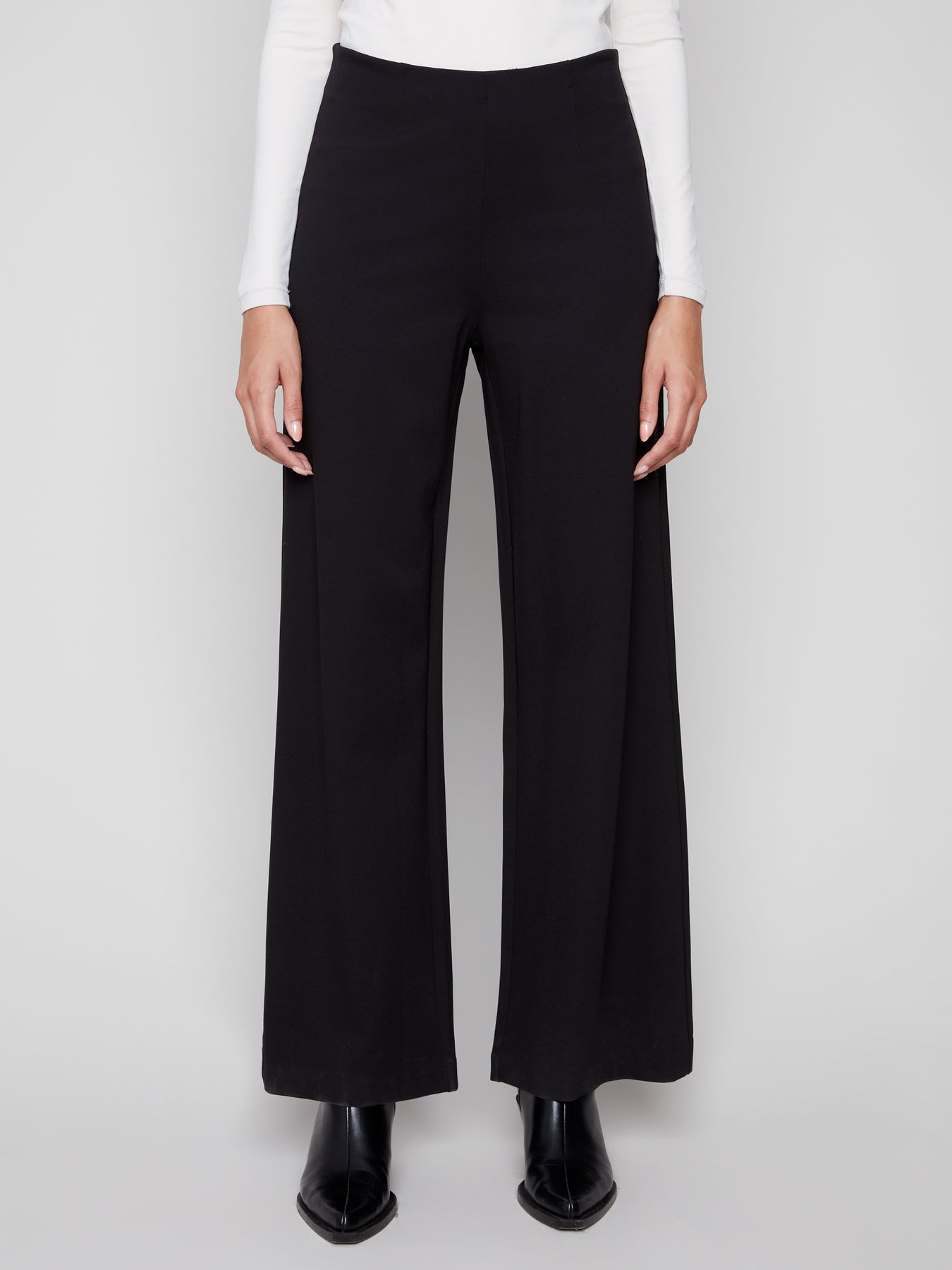 Designed for effortless style and comfort, these Pull-On Ponte Wide Leg Pants feature a smooth, stretchy ponte fabric that moves with you. The inside elastic waistband ensures a secure yet flexible fit, eliminating any discomfort or pinching. Their wide leg silhouette offers a flattering shape while allowing freedom of movement, making them perfect for both professional and casual settings. Elevate your wardrobe with pants that combine ease, elegance, and all-day wearability, ideal for those who value comfort without sacrificing style.