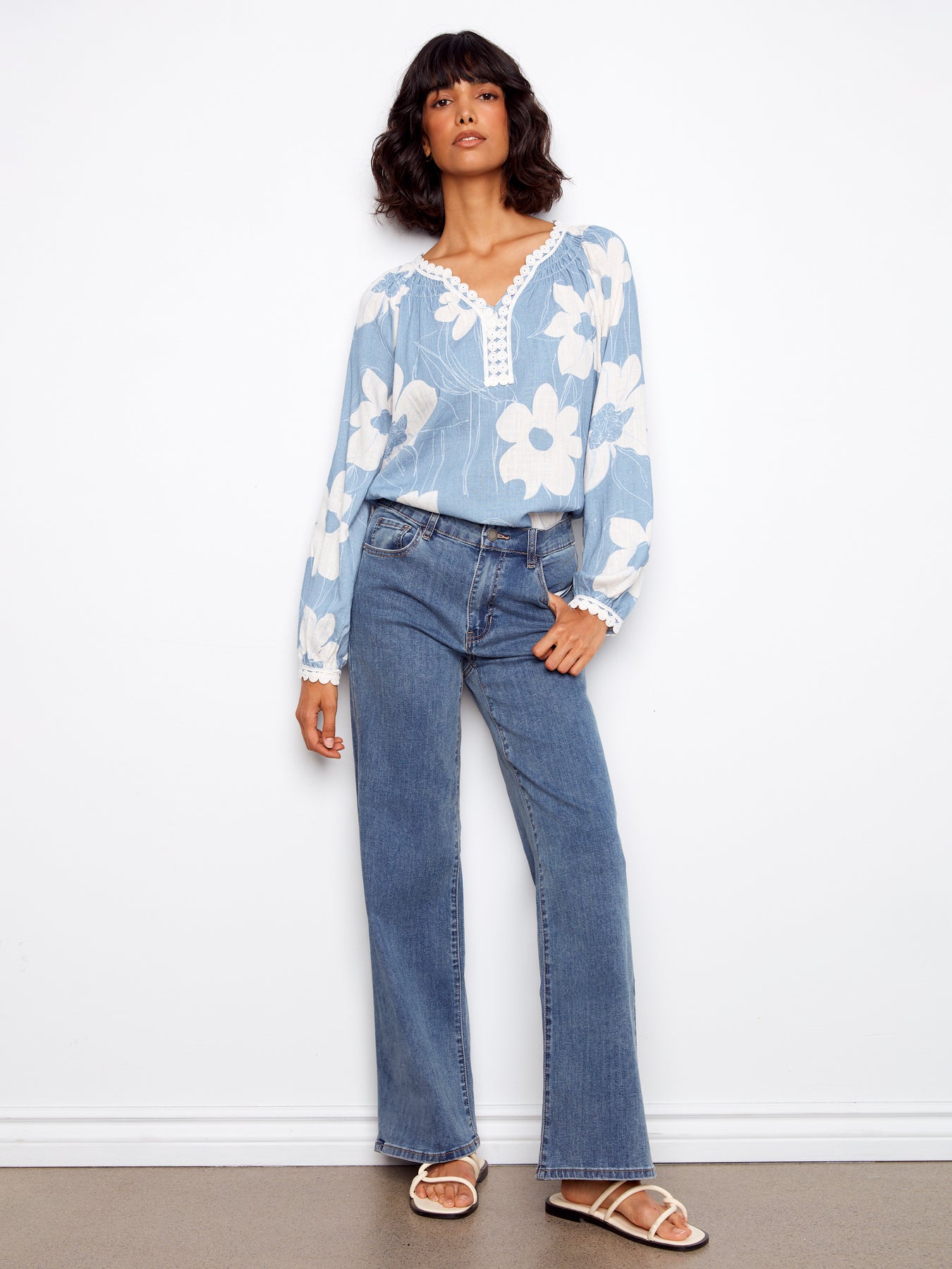 Printed Raglan Blouse with Crochet Trim Charlie B