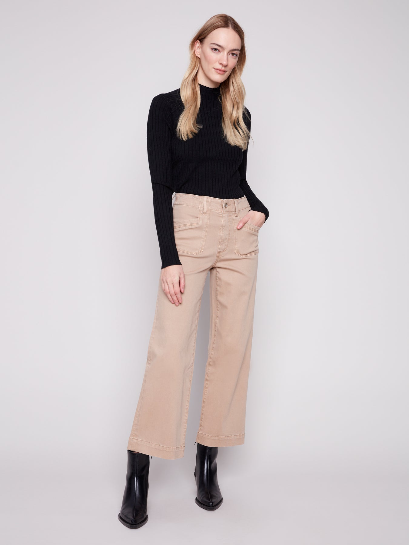 Cropped Wide Leg Stretch Twill Pants Charlie B