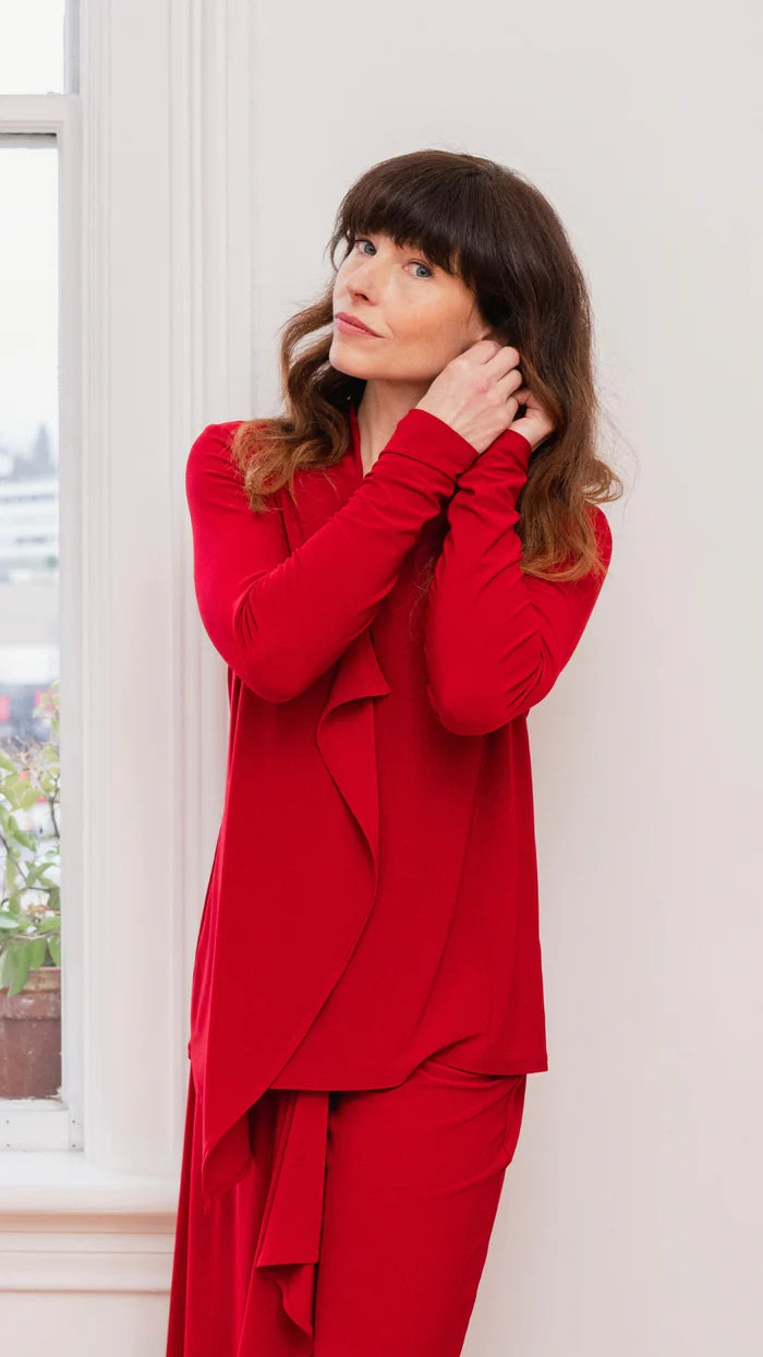 The Tempo Top features a distinctive V-neck design paired with a stylish mismatched hem that extends longer on one side, adding a modern twist to your wardrobe. Its long sleeves provide versatile coverage, perfect for layering or wearing alone. Crafted to blend comfort and unique style, this top effortlessly elevates any outfit, making it ideal for both casual and dressier occasions. Embrace contemporary fashion with the Tempo Top’s eye-catching asymmetry and flattering silhouette.