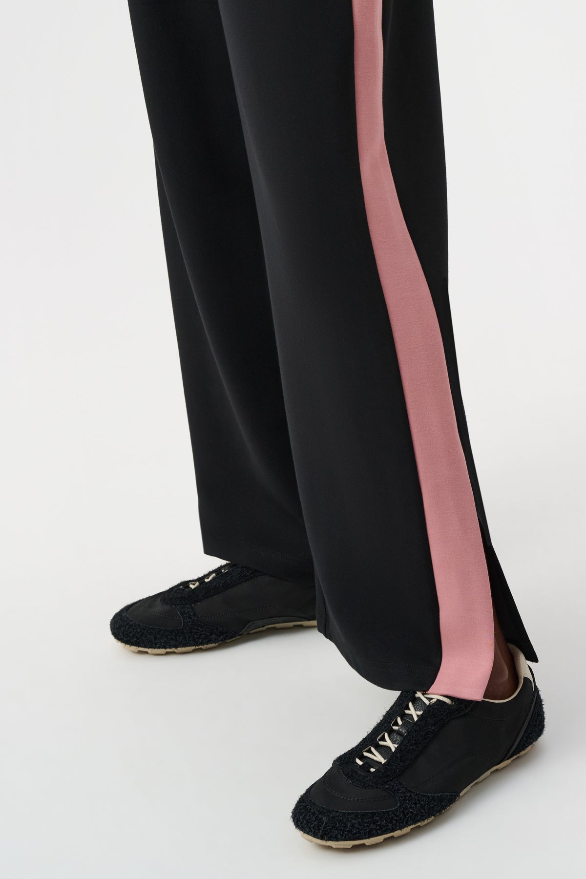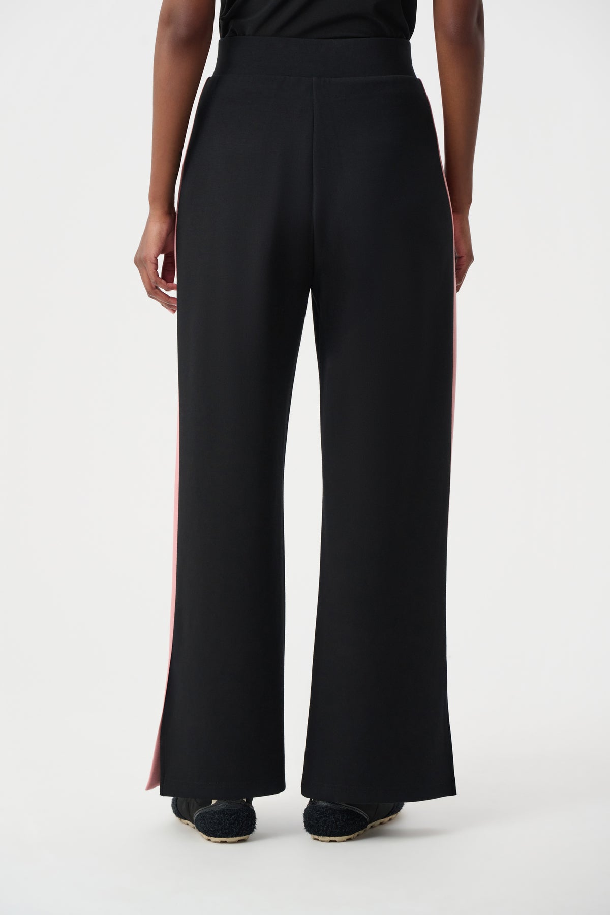 Designed in silky knit, these wide-leg pants feature flowing movement and gold-trimmed side slits for a polished touch. The covered elastic waistband delivers effortless comfort from day to night.