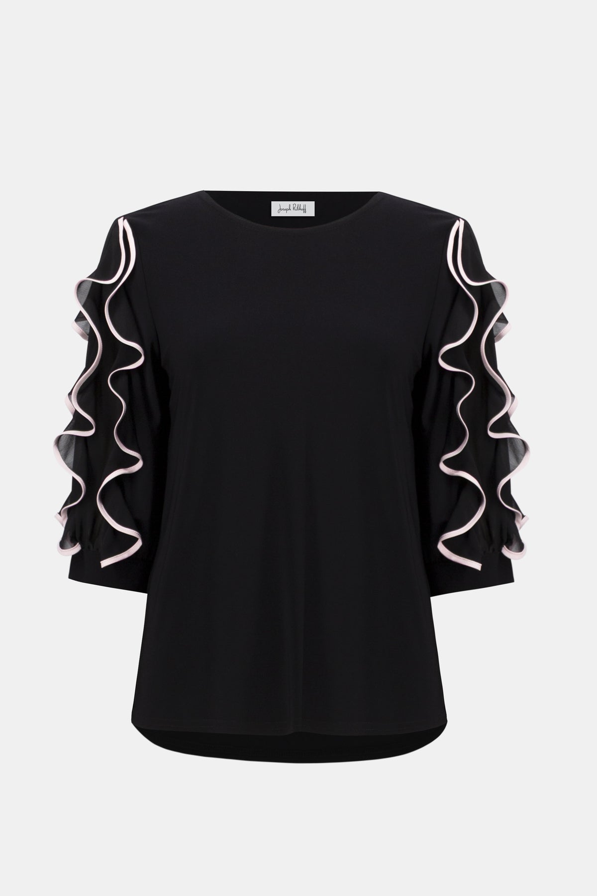 Silky Knit Top with Chiffon Ruffled Sleeves Joseph Ribkoff