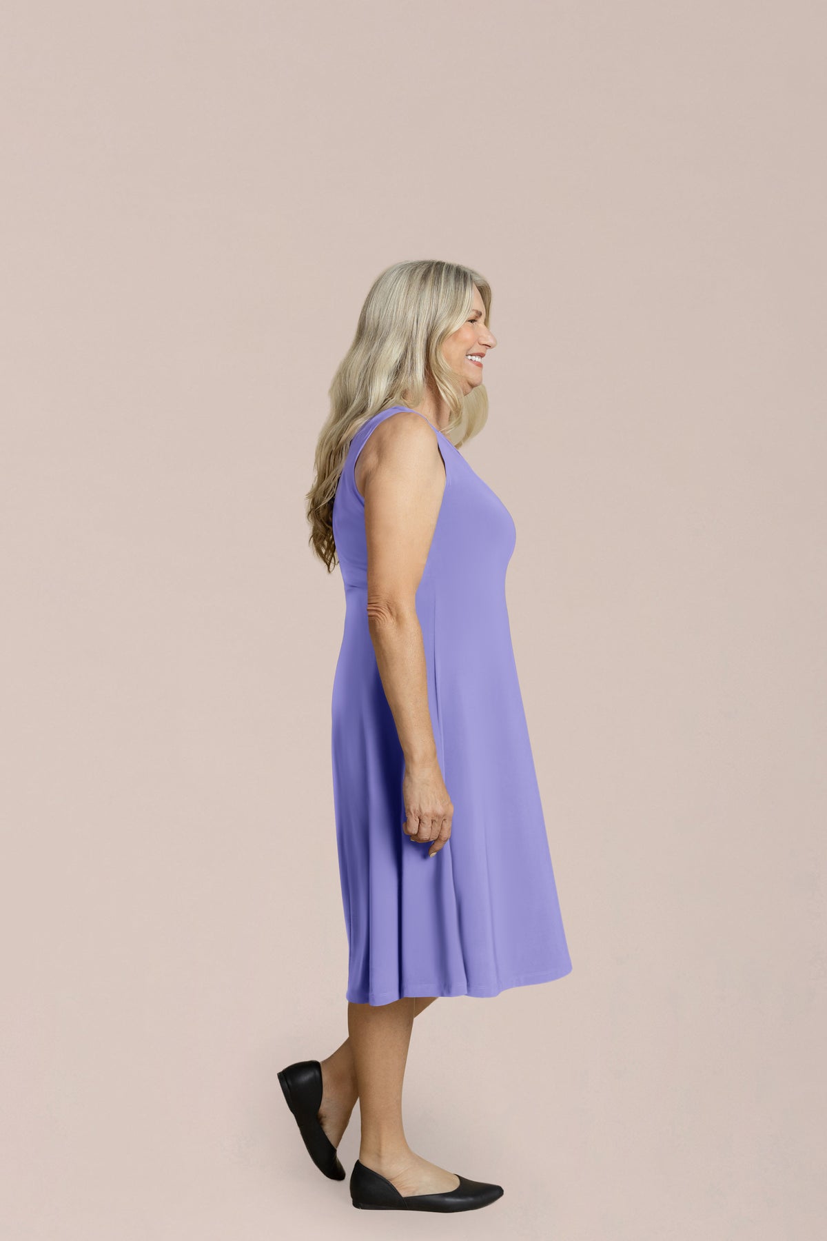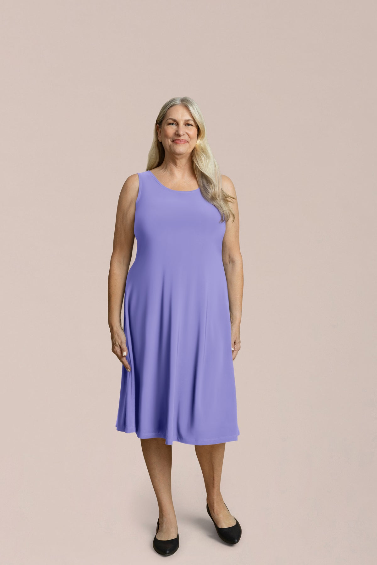 A versatile tank dress designed for everyday comfort. The sleeveless silhouette and A-line cut provide an effortless, flattering fit that moves with you throughout the day. Midi length offers practical coverage while the relaxed waist keeps you comfortable from morning to night.