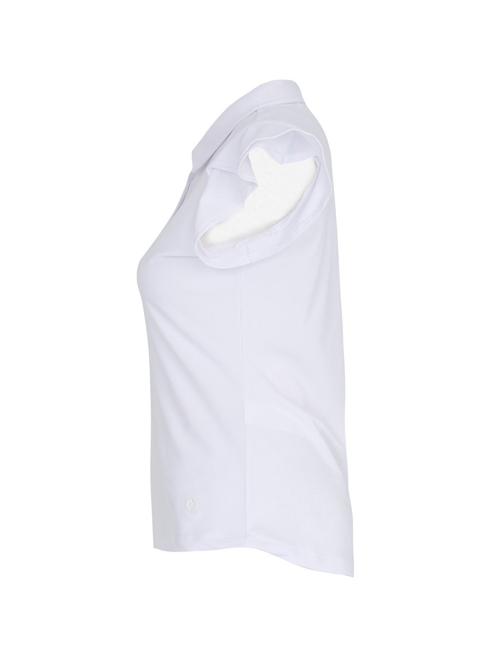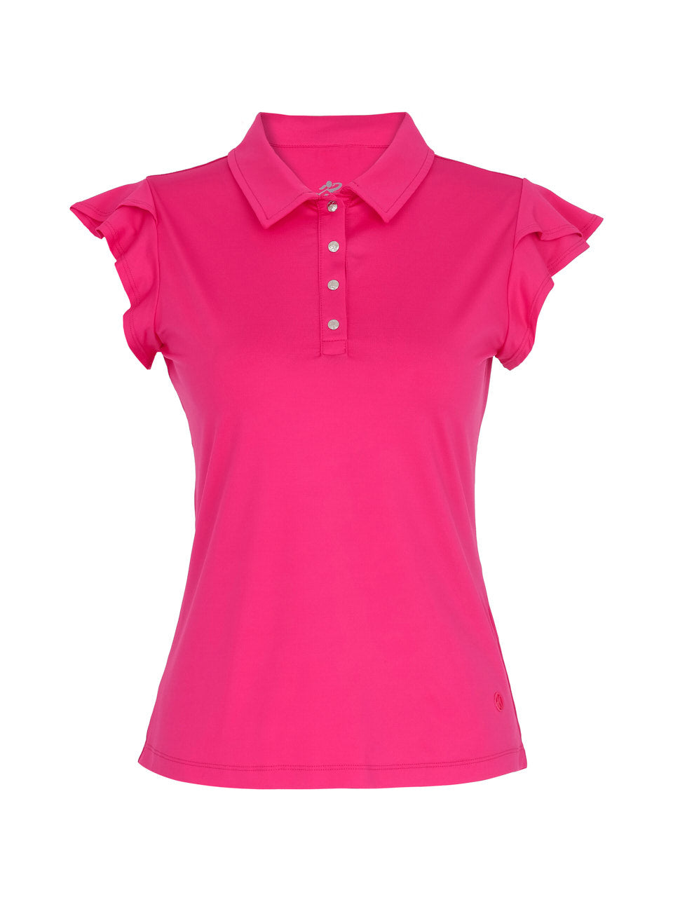 A refined take on the classic polo, this elegant top features soft flutter sleeves that add a feminine, graceful touch. The tailored silhouette and crisp collar create a polished look, while the smooth stretch fabric offers all-day comfort and ease of movement. Finished with a four-button placket, it’s a versatile piece perfect for the course, travel, or effortless everyday style.