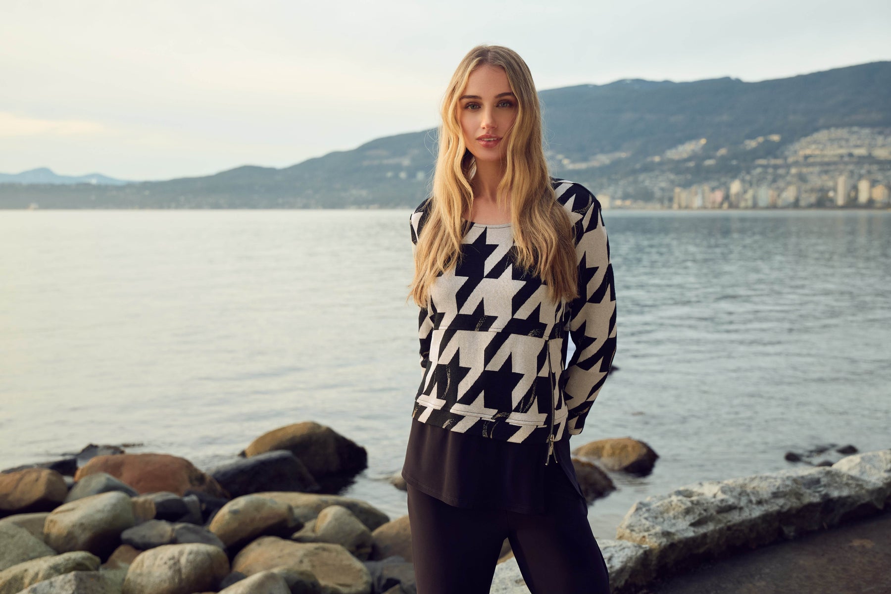 Elevate your style with this elegant and casual top by Frank Lyman. Designed with a practical zipper and a flattering regular fit, this hip-length garment suits both everyday wear and professional environments. Its crew neckline and 3/4 straight sleeves offer comfort without sacrificing style, while the abstract geometric design and jewel accents bring a refined, sophisticated flair.