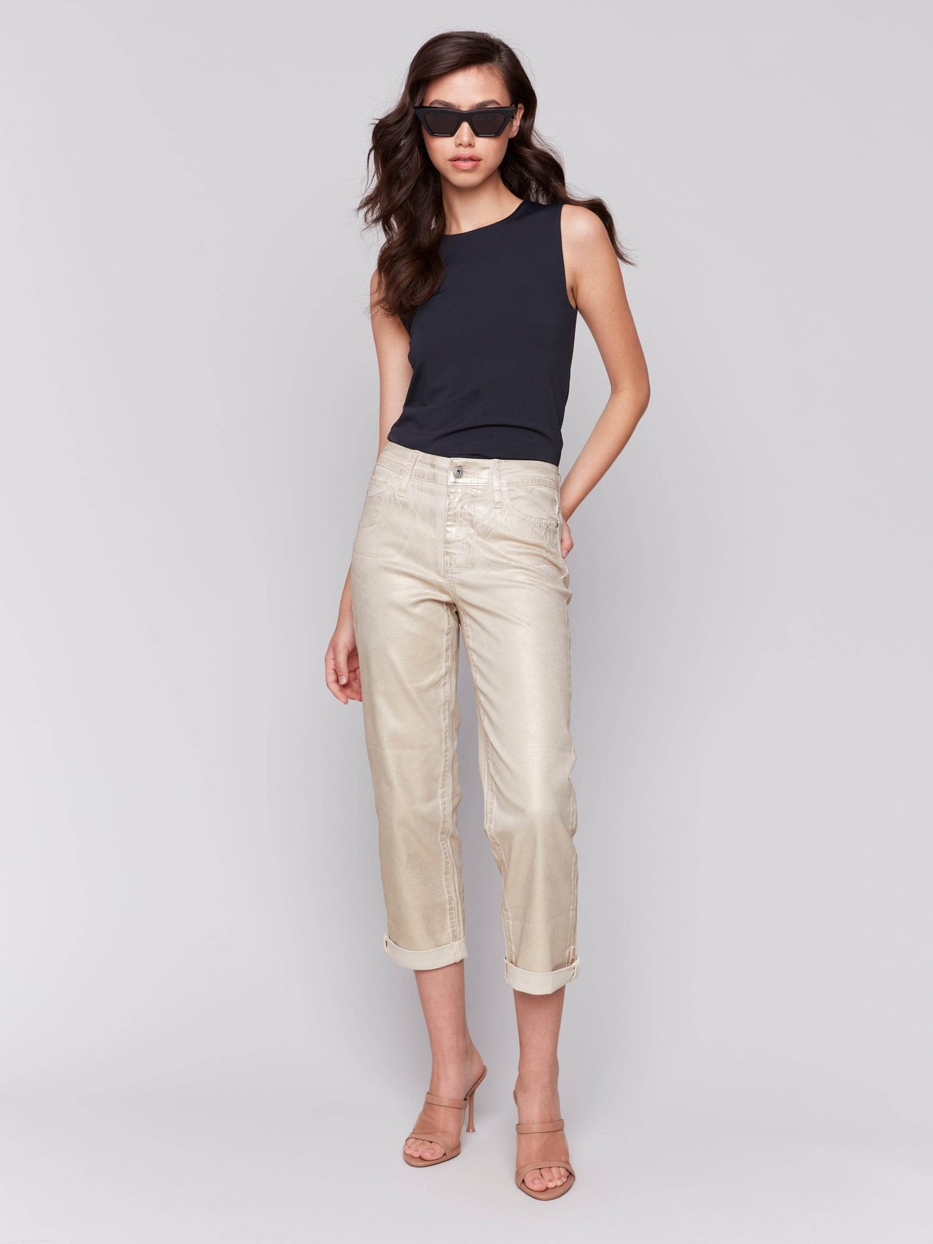 Foiled Straight Leg Pants with Cuffed Hem Charlie B