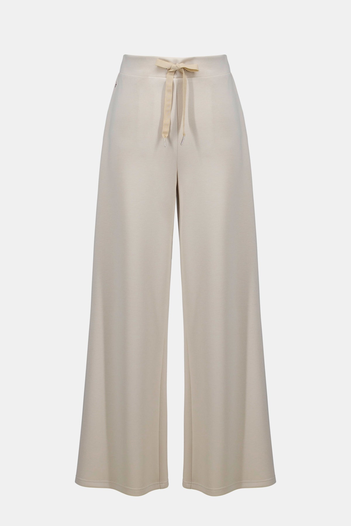 Conçu pour le confort avec une touche de modernité, ce pantalon en jersey scuba à enfiler présente une silhouette à jambes larges et une ceinture élastique agrémentée de cordons de serrage aux embouts métalliques élégants.