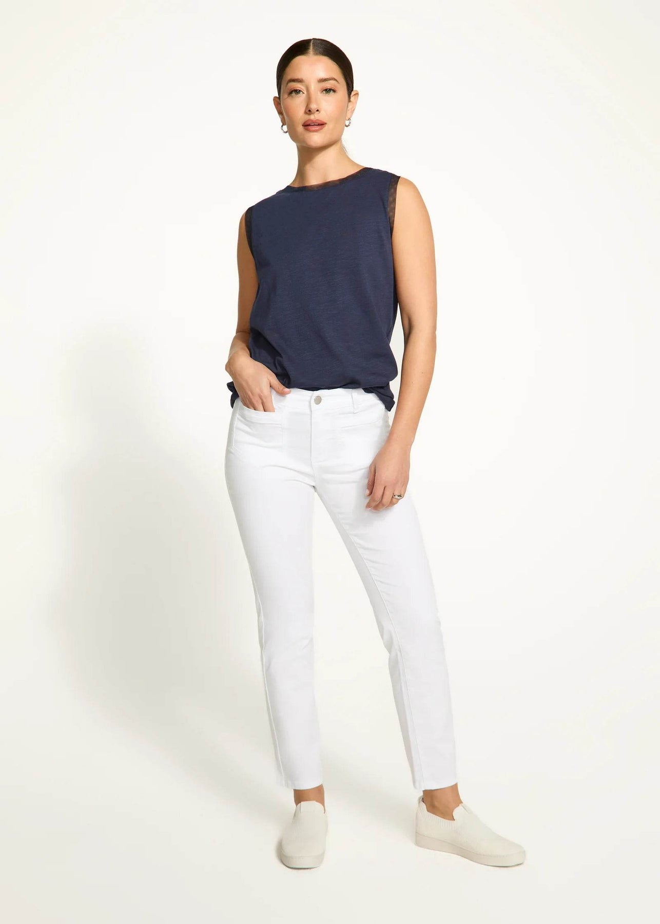 Ce débardeur à encolure bateau classique est parfait pour toutes les occasions. Sa coupe polyvalente et son confort optimal en font une pièce incontournable de toute garde-robe.