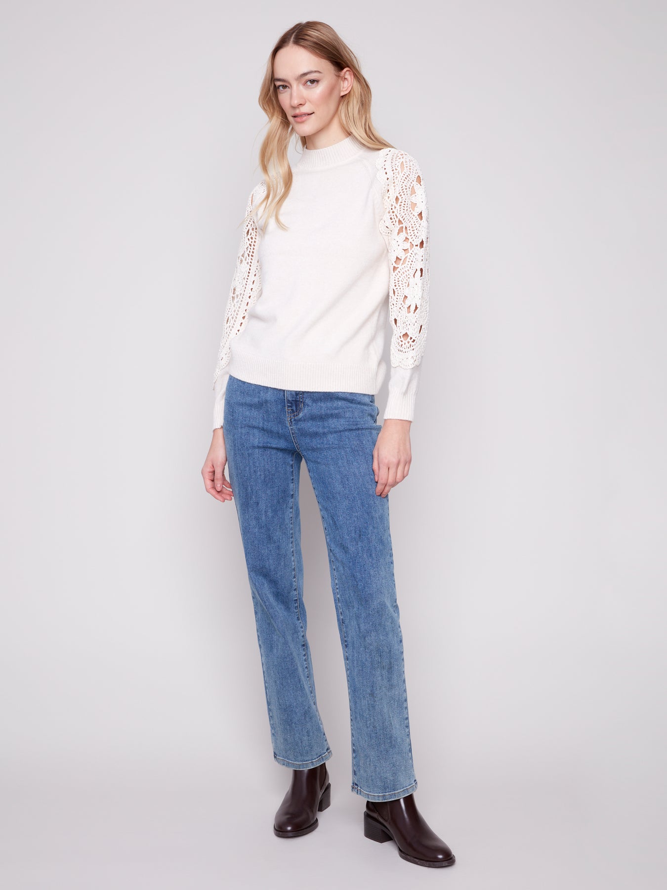 Mock Neck Sweater With Crochet Sleeves Charlie B