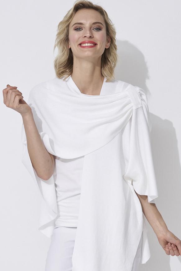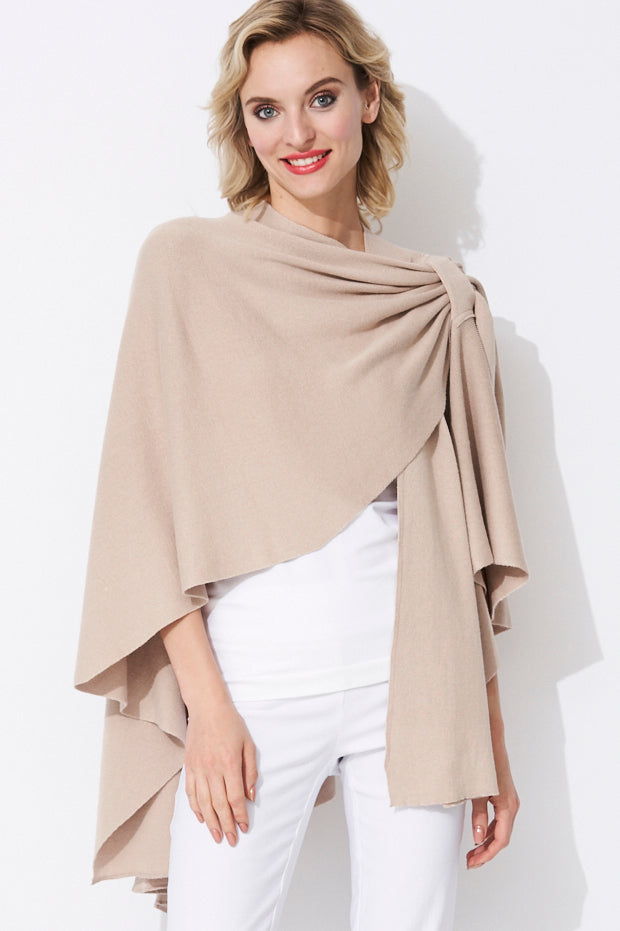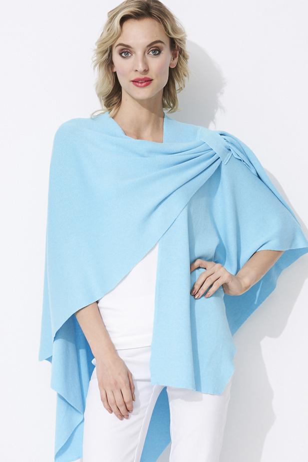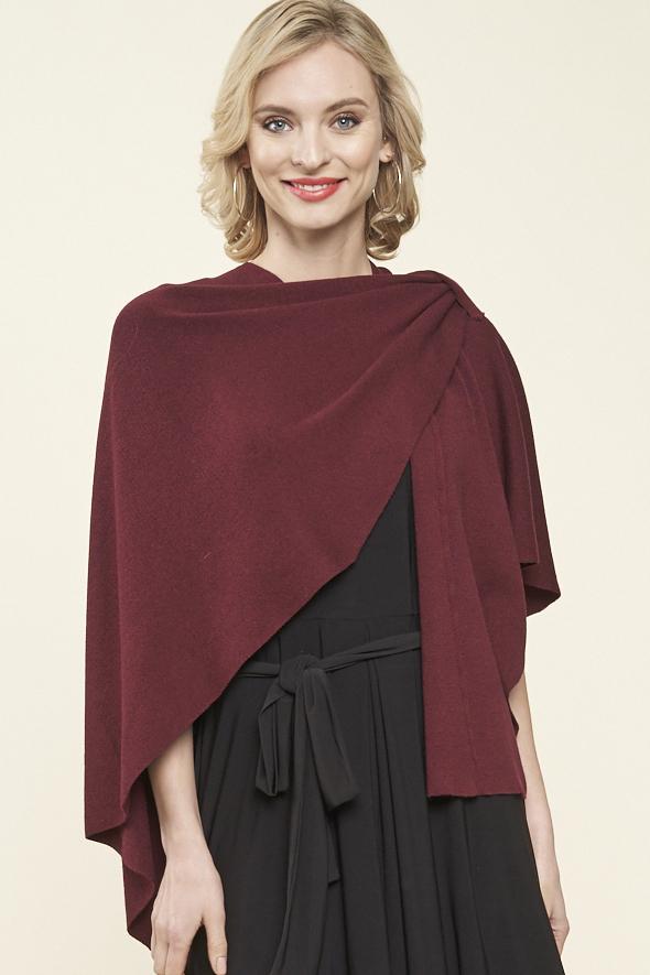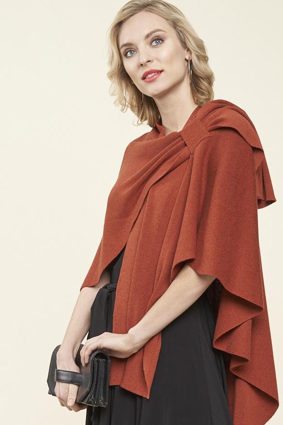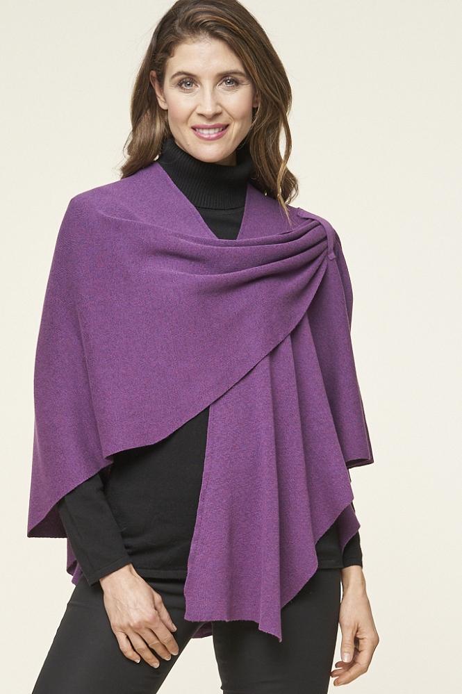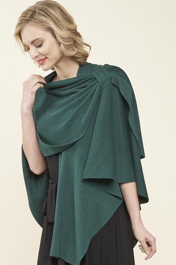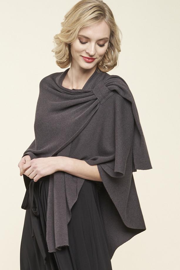 Love the design on shoulder with loop for inserting edge. Maintains the wrap in place and provides a dressy look. This is my 4th wrap.