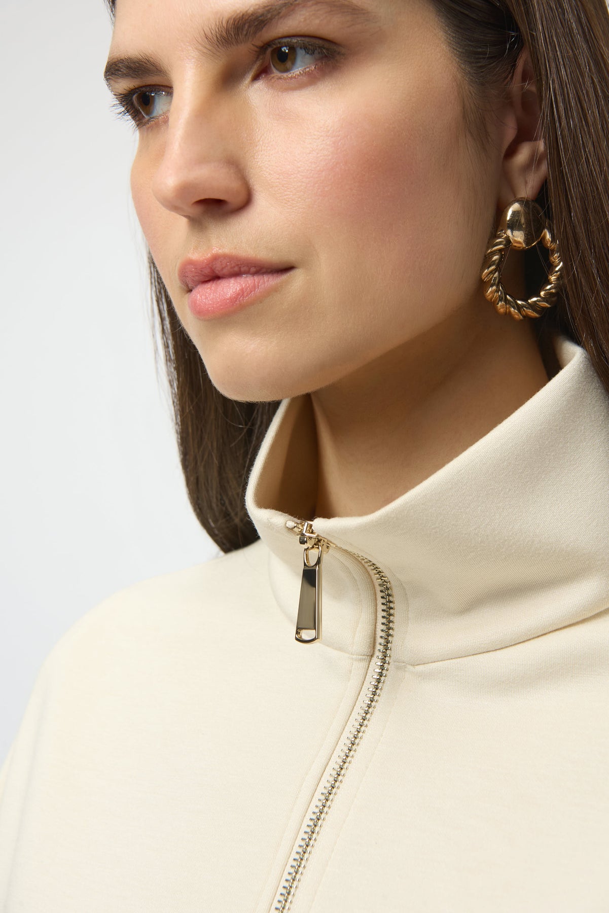 Une veste moderne à la coupe carrée, confectionnée en jersey scuba, avec col montant, fermeture éclair sur le devant et poches passepoilées. L'ornement distinctif JR apporte une touche finale raffinée.