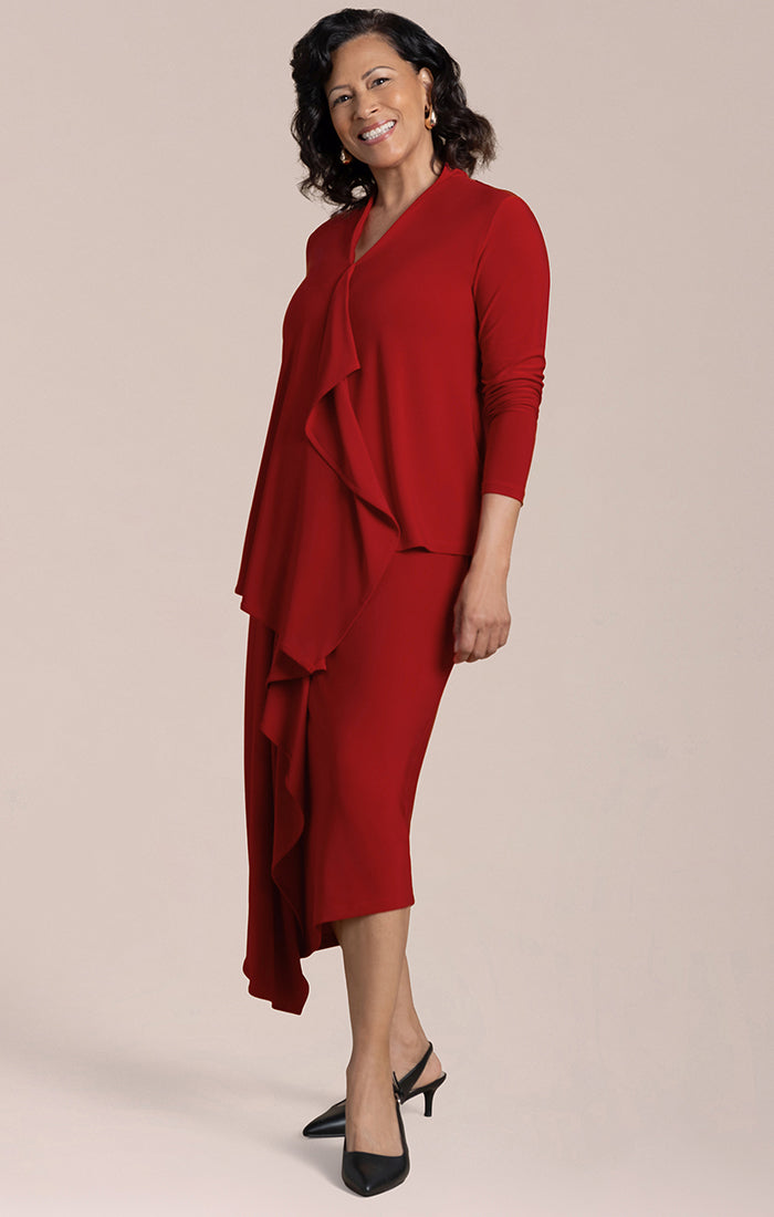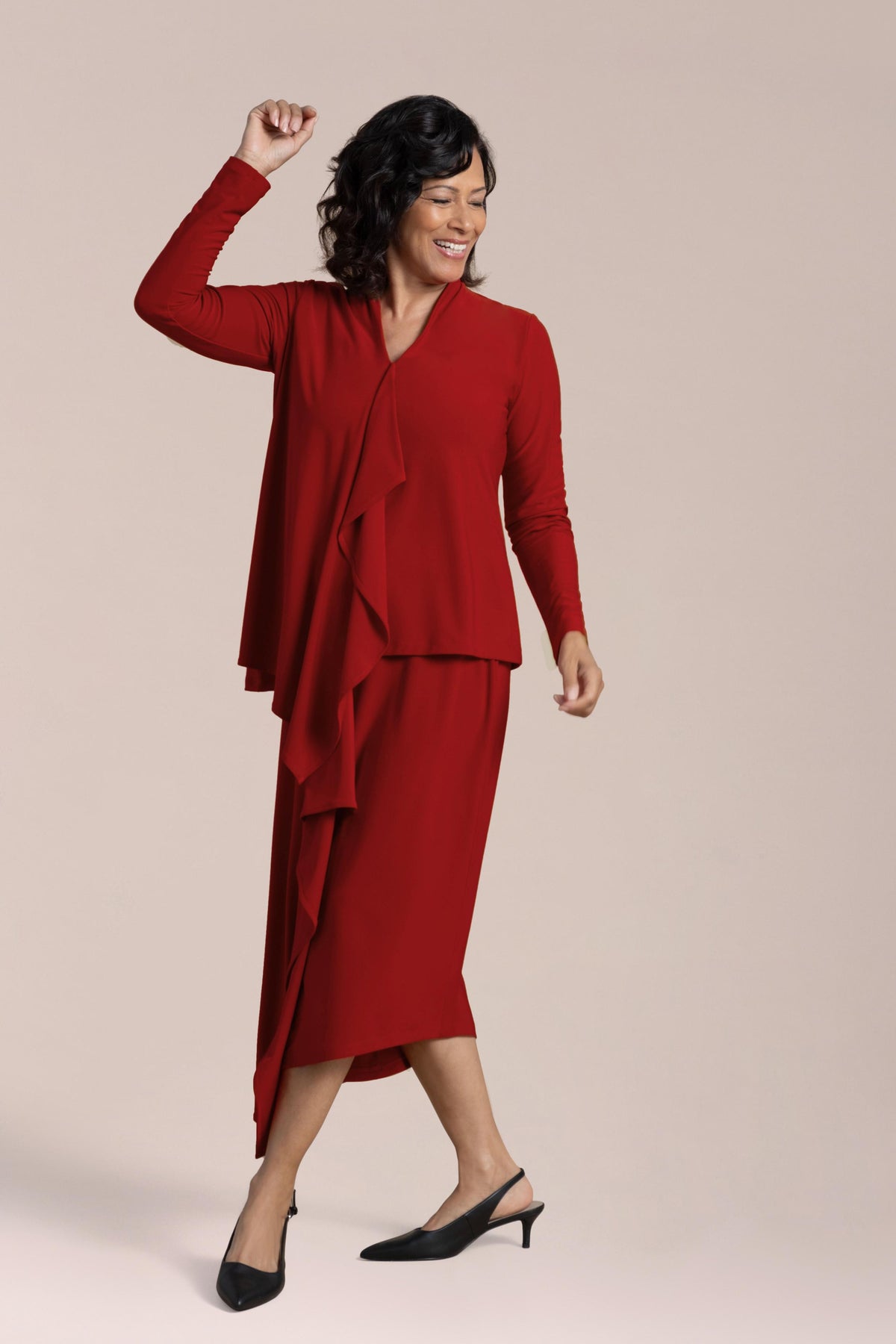 Le top Tempo se distingue par son décolleté en V original et son ourlet asymétrique élégant, plus long d'un côté, apportant une touche de modernité à votre garde-robe. Ses manches longues offrent une couvrance polyvalente, idéale à superposer ou à porter seules. Conçu pour allier confort et style unique, ce top rehausse instantanément n'importe quelle tenue, ce qui le rend parfait pour les occasions décontractées comme habillées. Affirmez votre style avec l'asymétrie audacieuse et la silhouette flatteuse du top Tempo.