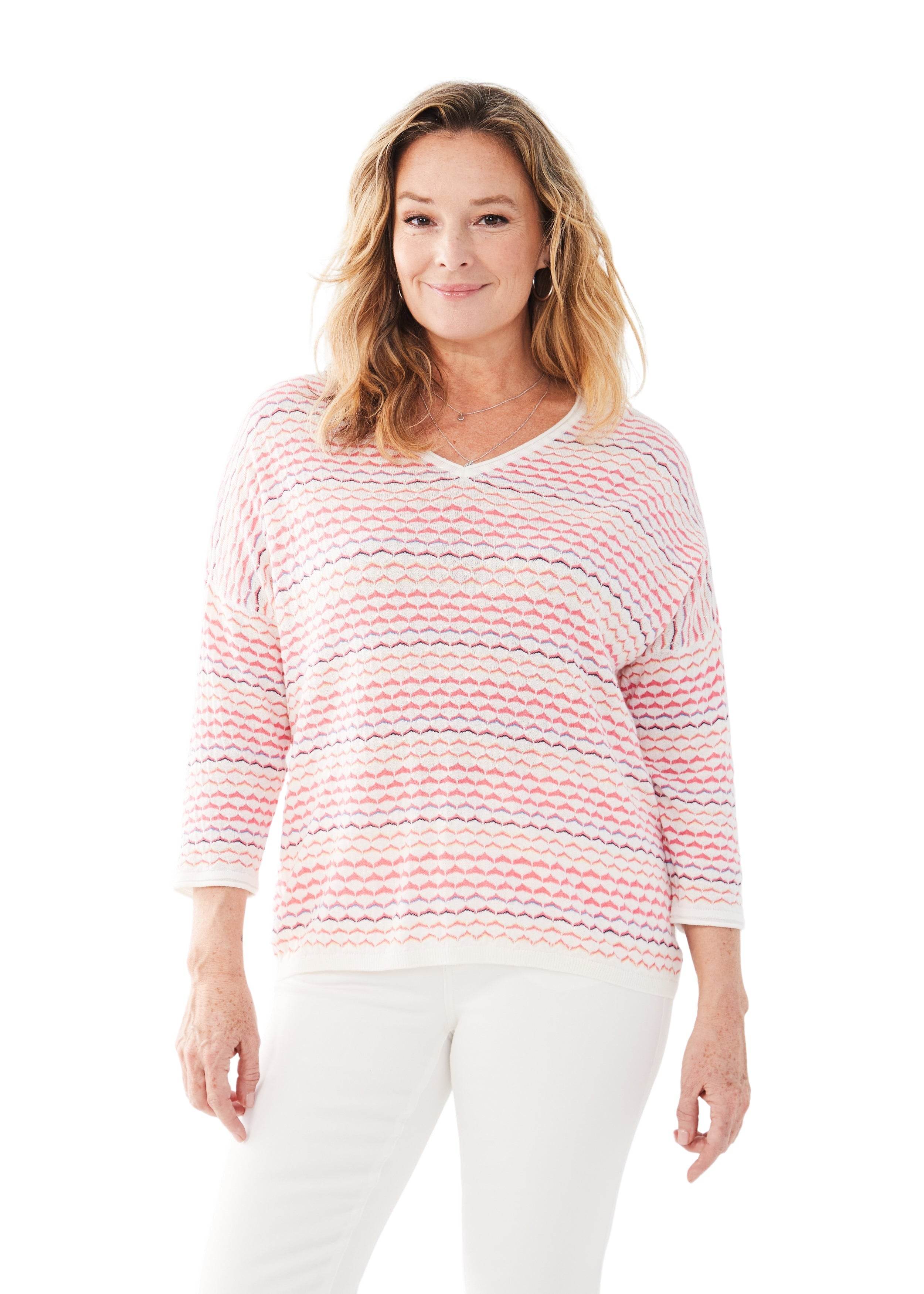 This sweater is an elegant way to elevate any outfit. The v-neck and 3/4 sleeve design create a stylish look that is both sophisticated and timeless. With its versatile design, it can be dressed up or down and paired with a variety of bottoms for a chic and effortless ensemble. Add this luxurious sweater to your wardrobe for a touch of class and refinement.- 55% Acrylic, 45% Cotton