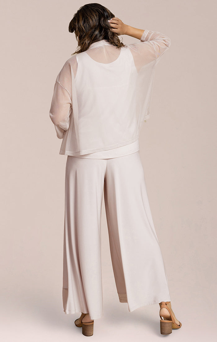 Elevate your layering with this effortlessly refined open-front cardigan, designed with a soft, fluid drape that moves beautifully with you. Crafted from a lightweight, semi-sheer fabric, it features a relaxed silhouette with wide, flowing sleeves that add a touch of elegance to any outfit. The cropped, airy shape pairs perfectly with coordinating separates or your favorite basics, offering a polished yet comfortable look ideal for day-to-evening wear.