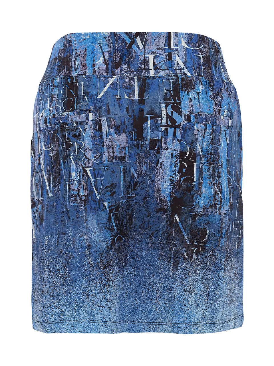A stylish golf skort featuring an artistic Echo print inspired by layered textures and abstract lettering. Designed for both performance and polish, this pull-on skort offers a comfortable fit with built-in shorts for confident movement on and off the course. The smooth stretch fabric provides ease and flexibility, while the striking blue tones create a modern, sporty look that pairs effortlessly with coordinating tops. Perfect for golf, travel, or casual summer days.
