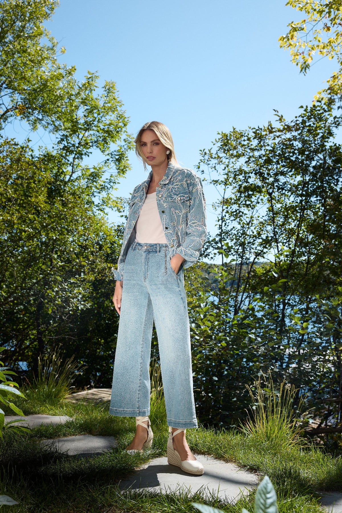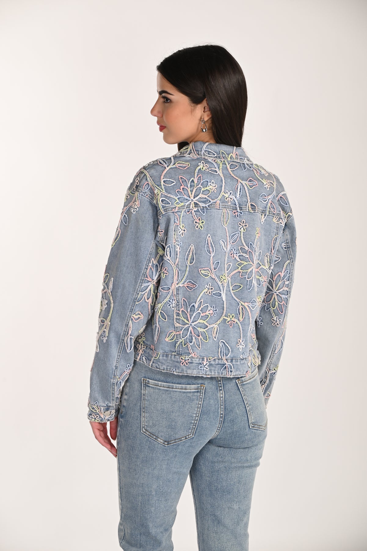 A classic denim jacket updated with allover floral embroidery for a soft, feminine touch. Designed with a button front and chest pockets, it keeps the timeless structure you love with added detail. Perfect for layering over tees, tanks, or dresses for an easy everyday look.
