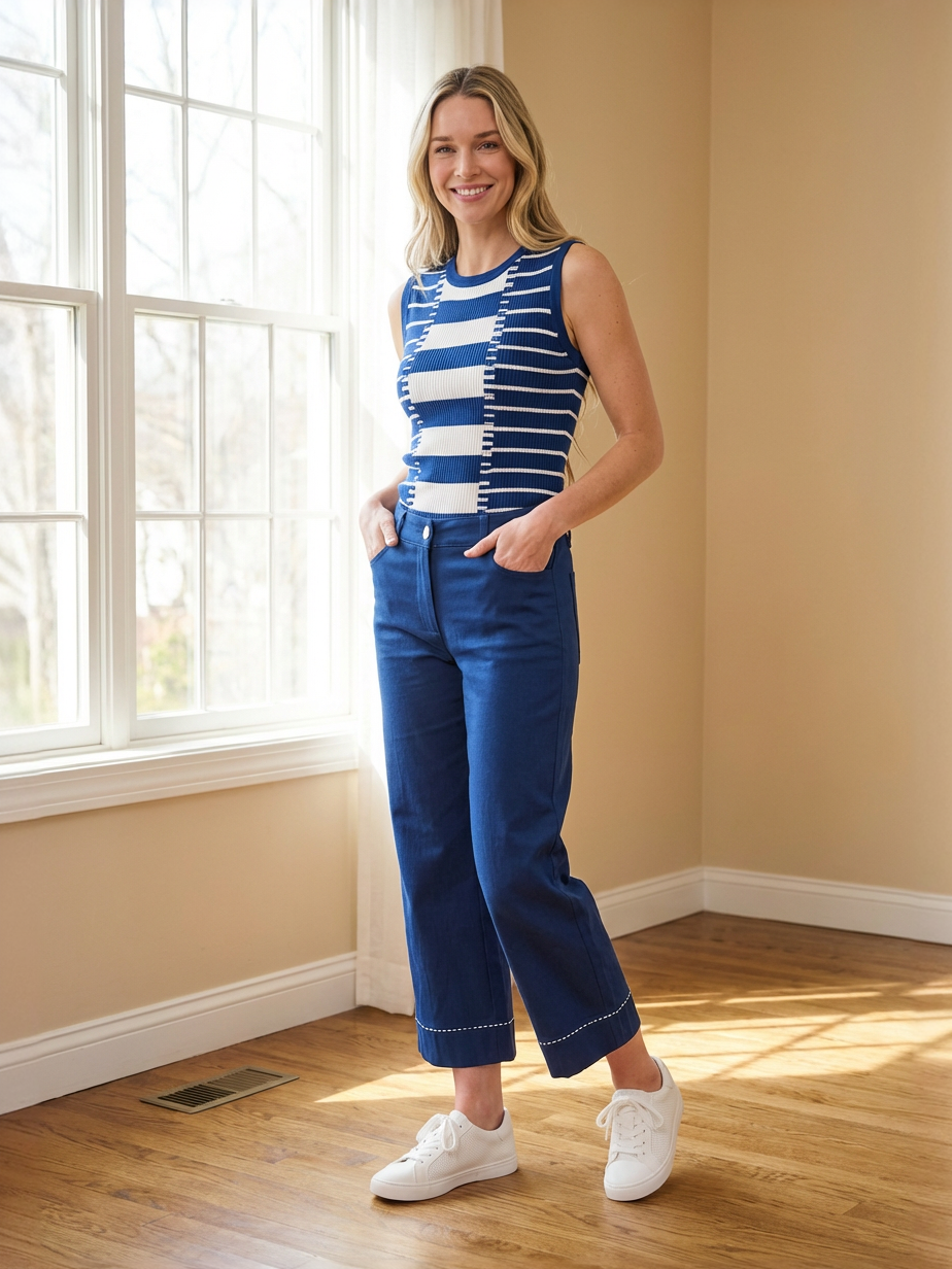 Hampton Twill 26” Pick Stitch Hem Wide Crop Lisette L