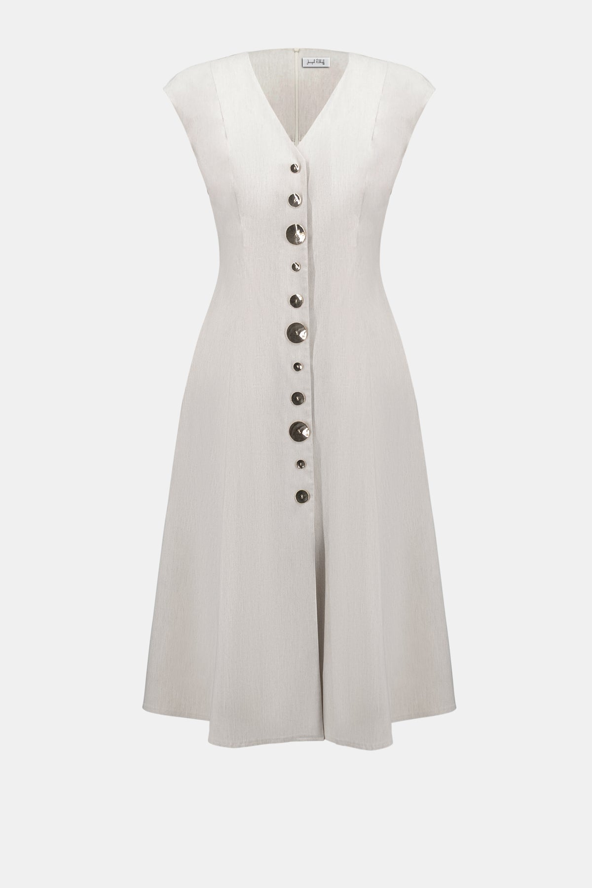 This millennium fit-and-flare dress features short dolman sleeves and a V-neckline highlighted by a button-down front. A center back zipper completes the below-the-knee design, combining a polished shape with easy comfort.