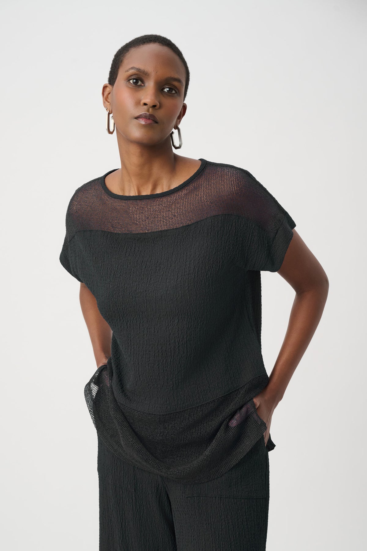 Seersucker and Mesh Boxy Top With Boat Neckline Joseph Ribkoff