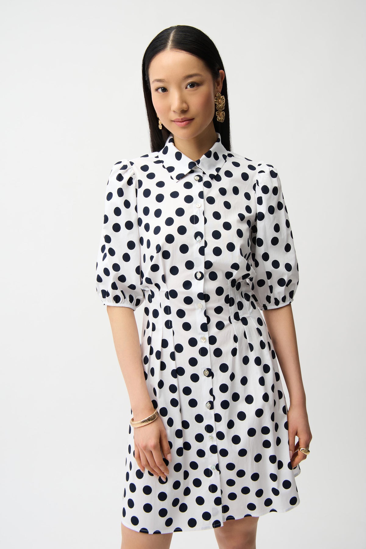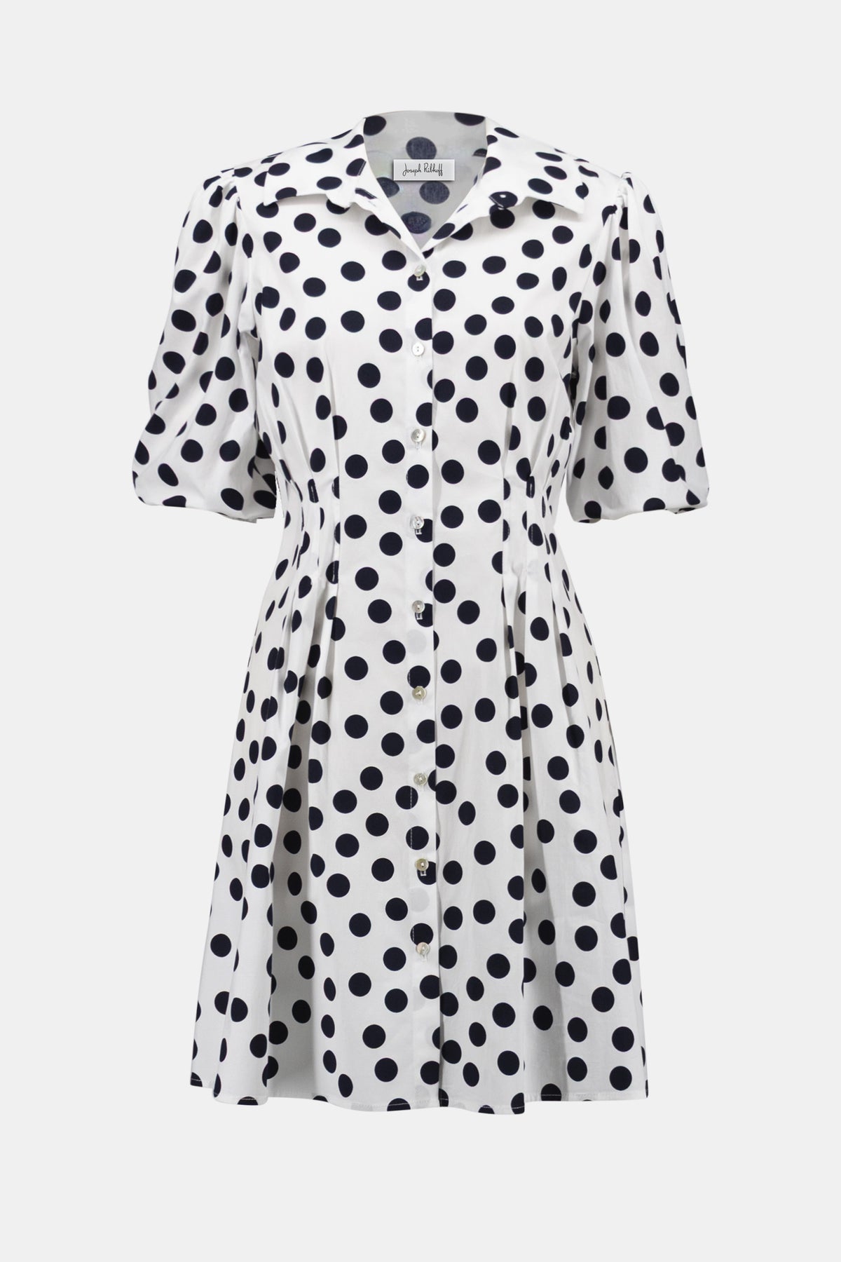 Stretch Poplin Dot Print A-Line Shirt Dress With Puff Sleeves Joseph Ribkoff