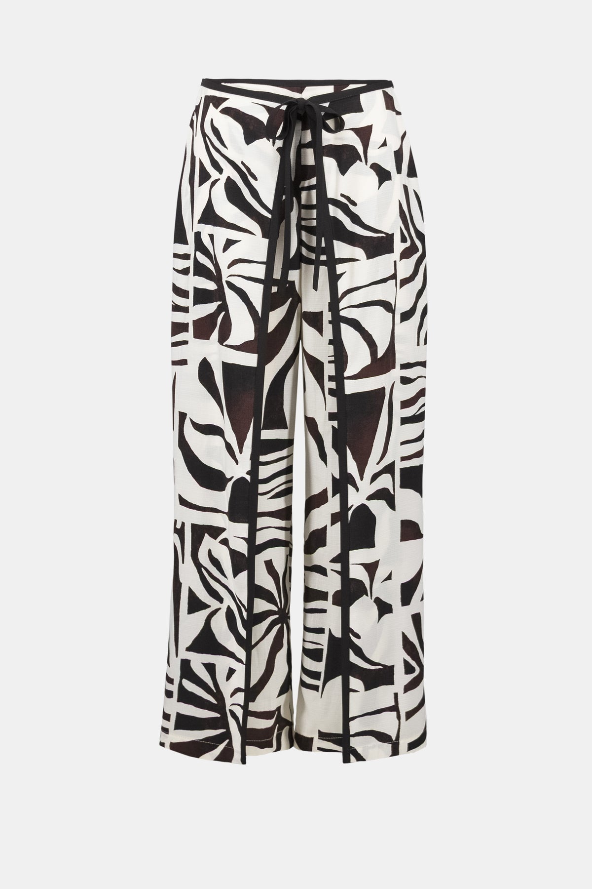 Vibrant tropical patterns bring island-inspired style to these lightweight gauze pants, featuring a chic tie-front detail and flowing wide-leg cut. A concealed back zipper maintains a polished, seamless silhouette.